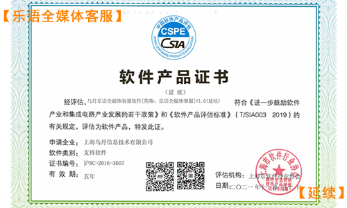 恭喜上海乌丹信息技术有限公司旗下产品“乐语全媒体客服”获得上海软件行业协会软件产品证书认定,继续延续五年!